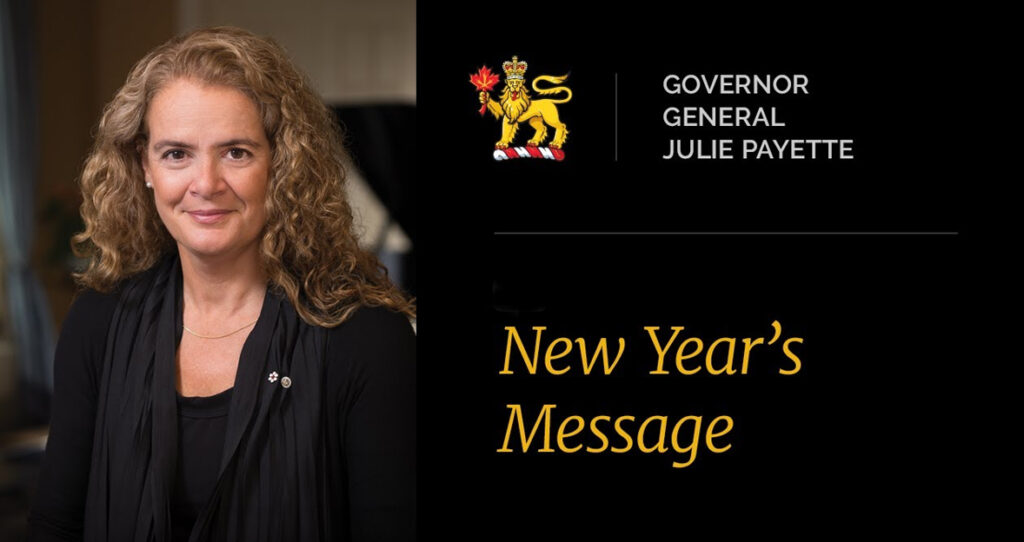 2021 New Year’s Message from the Governor General OTTAWA, Dec. 29, 2020 — Greetings to all of you, people of Canada, from coast to coast to coast. In respect for the … Continue reading 2021 New Year’s Message from the Governor General