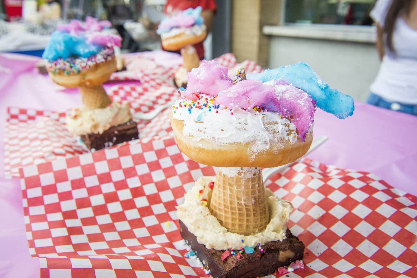 - Sugar Mountain – A brownie topped with cheesecake topped with a white-chocolate-dipped sugar cone topped with a confetti donut topped with cotton candy, and dusted with powdered sugar. This may or may not give you diabetes.