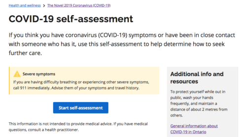 TORONTO, March 23, 2020 — With the increasing severity of the COVID-19 outbreak, Ontario has now launched an enhanced and interactive self-assessment tool. This new easy-to-use tool takes the public through … Continue reading Interactive COVID-19 test posted by province of Ontario