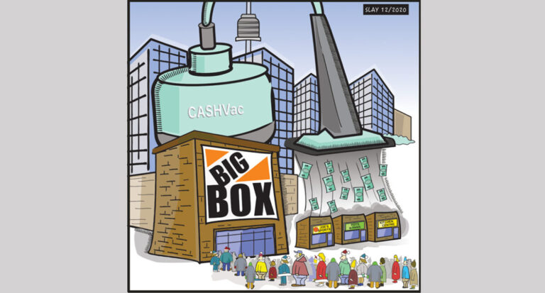 An exclusive TOtimes cartoon series by Stephen Lay Views from the 6ix: Big box benefits cartoon— Stephen Lay is also the creator of the Mirror Image comic strip. Find more … Continue reading Views from the 6ix: Big box benefits cartoon