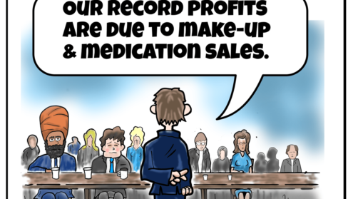 An exclusive TOtimes cartoon series by Toronto cartoonist Stephen Lay Views from the 6ix: Toronto cartoon series — Stephen Lay is also the creator of the Mirror Image comic strip. Find more … Continue reading Views From The 6ix cartoon – Grocery profits